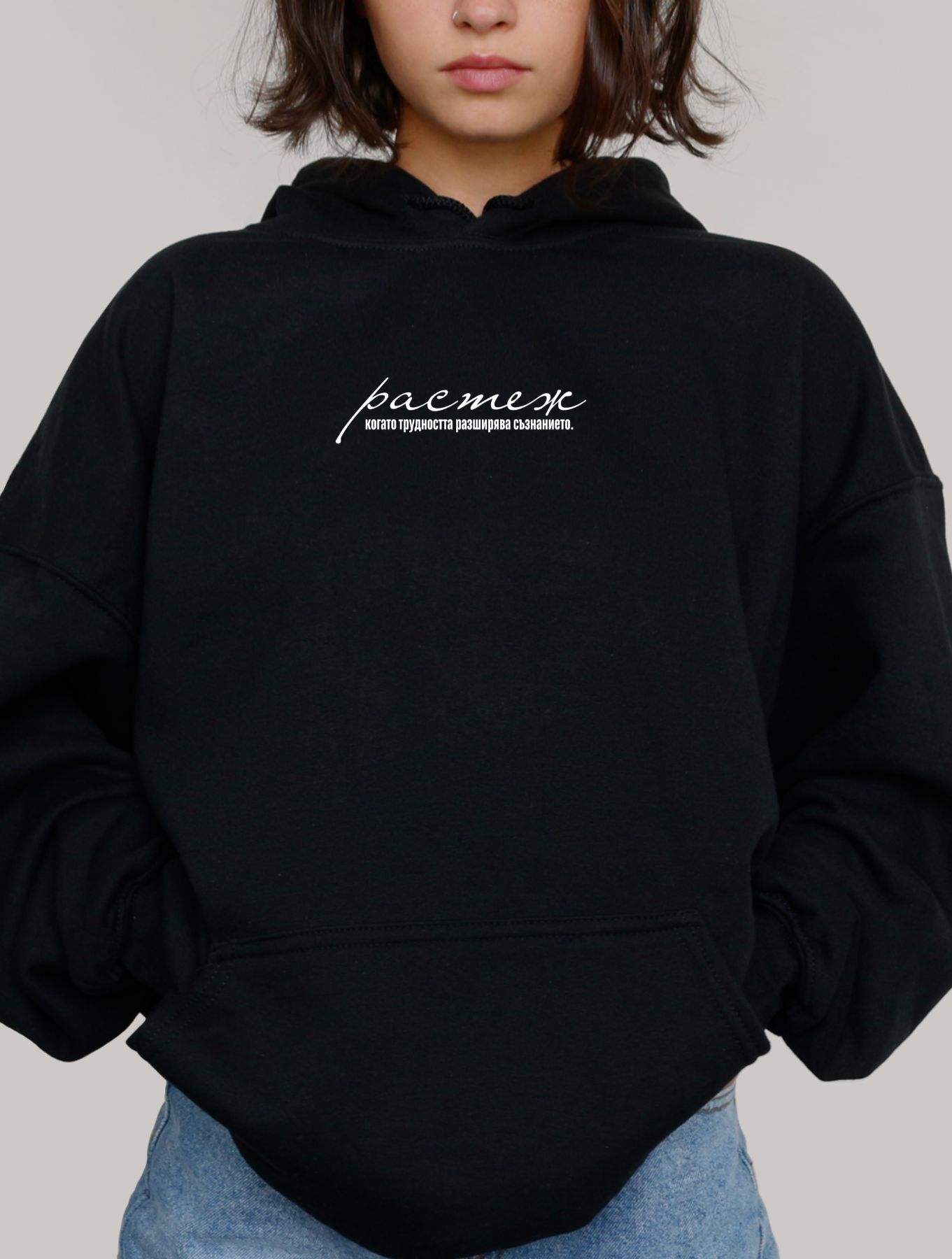 Кройката е oversize & унисекс — модерна, свободна и подходяща за всеки стил.
