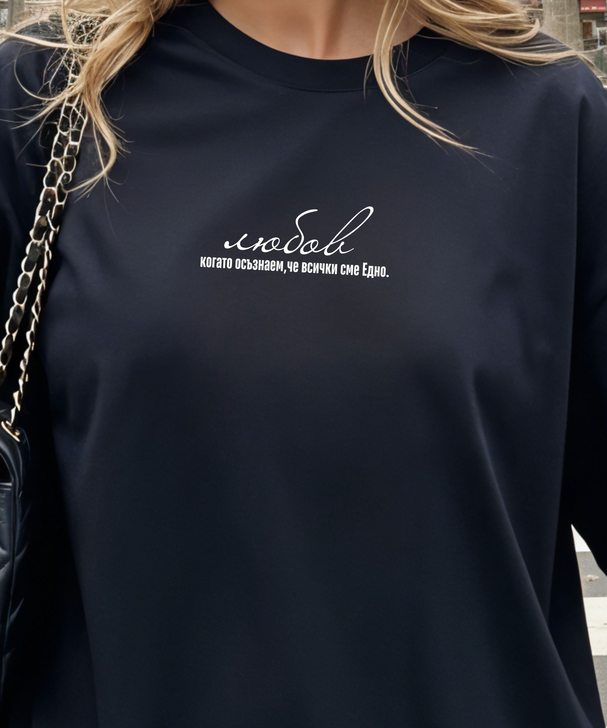 Това не е просто тениска – това е твоята лична заявка. Овърсайз кройка, плътен премиум памук и изчистен дизайн, който не е натрапчив, но говори силно. За жени, които ценят детайла, вярват в силата на думите и знаят какво заслужават.