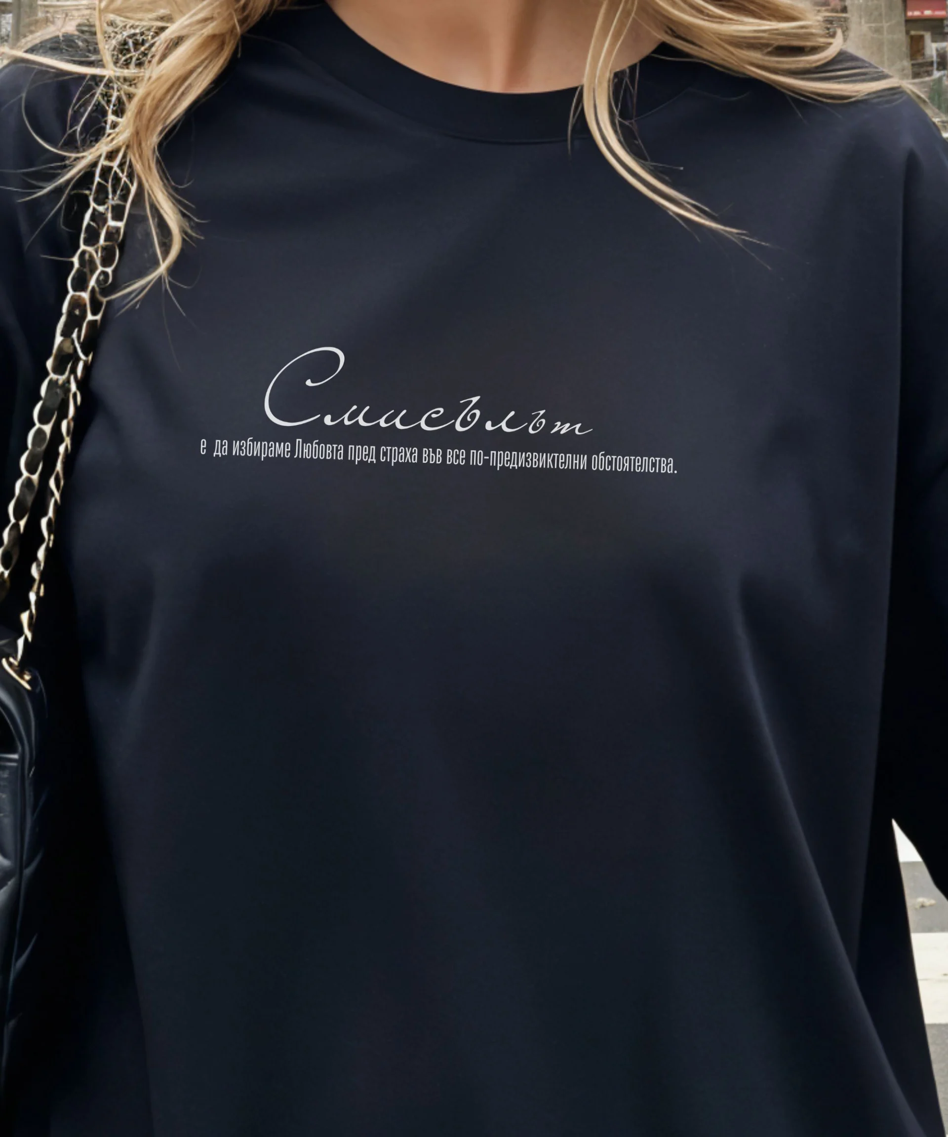 Това не е просто тениска – това е твоята лична заявка. Овърсайз кройка, плътен премиум памук и изчистен дизайн, който не е натрапчив, но говори силно. За жени, които ценят детайла, вярват в силата на думите и знаят какво заслужават.